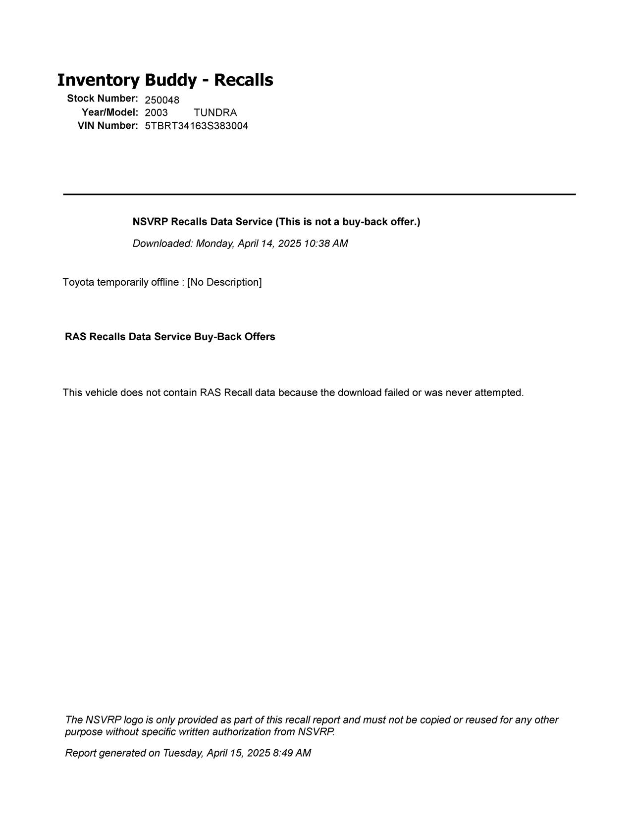 We sell warrantied OEM recycled used auto parts that are tested for quality.