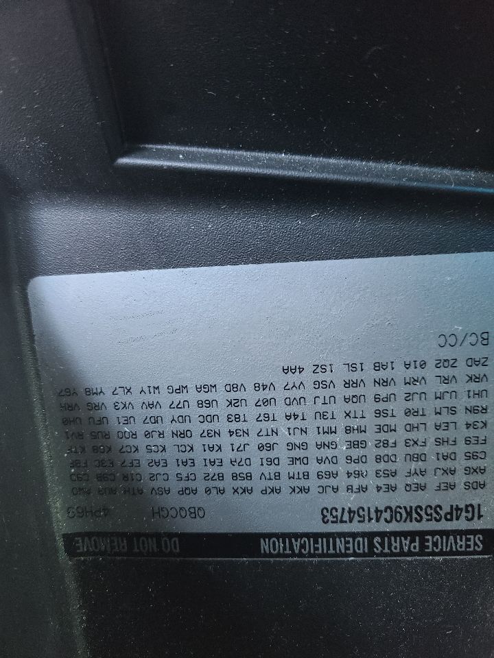 2012 BUICK VERANO Part:187 Stock:260001 Bumper Cover Rear NIQ,RETAIL 12 W/rear Park Assist (opt UD7) R00955371